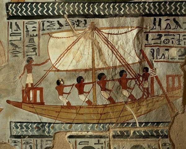 En las velas del Nilo podemos ver en unas pinturas murales de Tebas como los primitivos utilizaban estas técnicas.